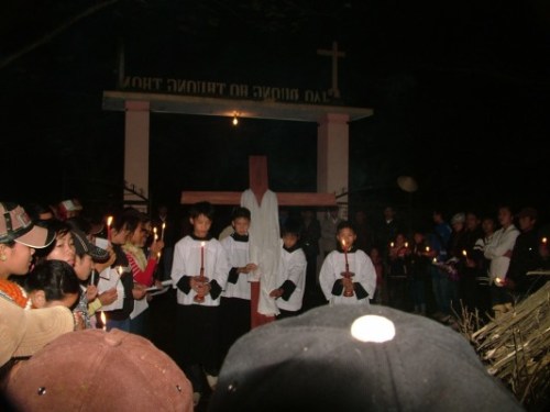 Vinh_Tại Thánh đưòng Giáo họ Thượng Thôn, Xứ Trang Nứa, Giáo phận Vinh vào lúc 20h tối, ngày mùng 3 têt đã diễn ra một buổi cung nghinh Thánh Giá rất long trọng với sự tham dự đông đảo của các bạn trẻ trong toàn Giáo xứ và đặc biệt được sự hiệp thông suy tôn mầu nhiệm Thập Giá của các bạn trẻ giáo xứ Thượng Lộc đến tham dự, để cầu nguyện cho anh chị em giáo xứ Đồng Chiêm.
